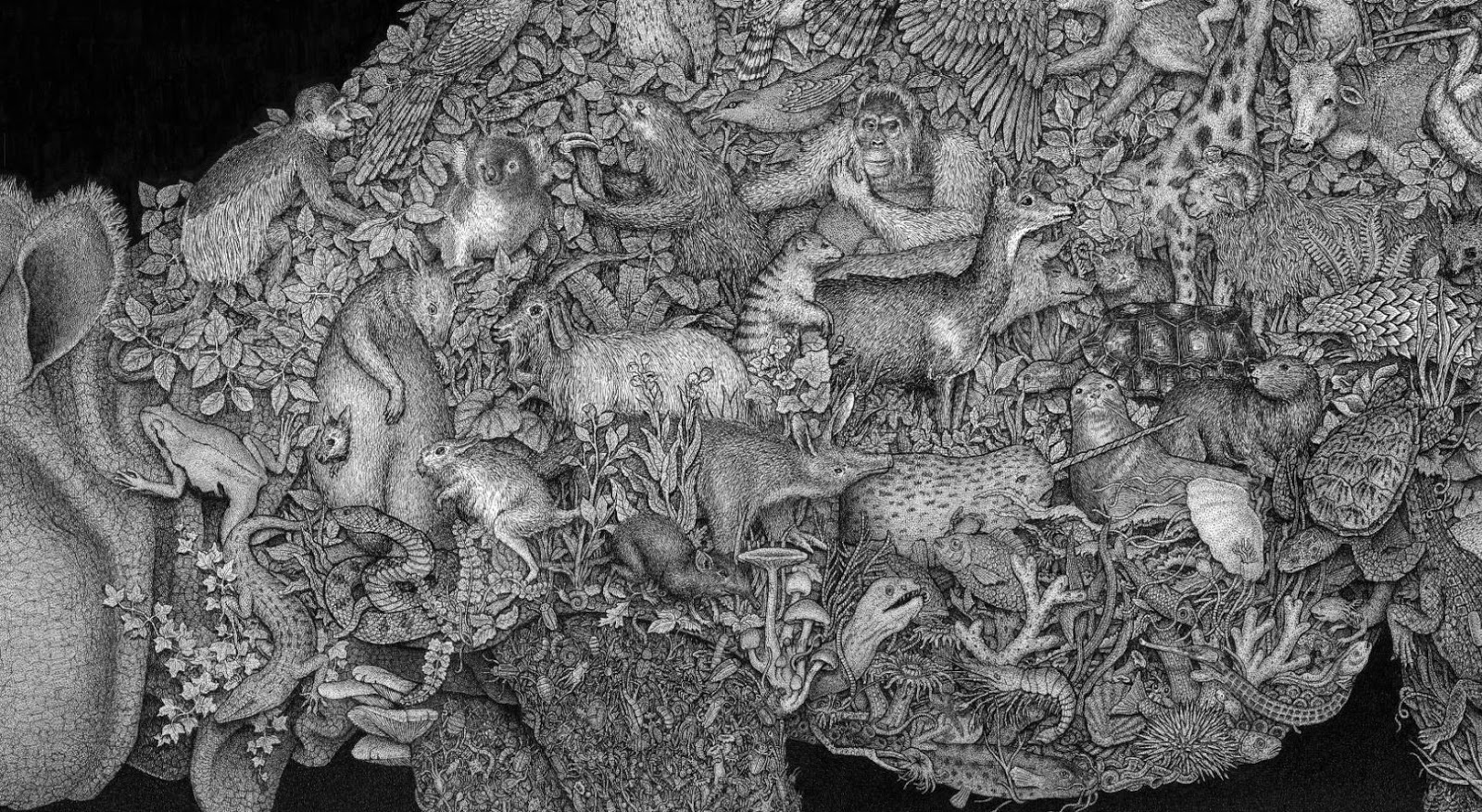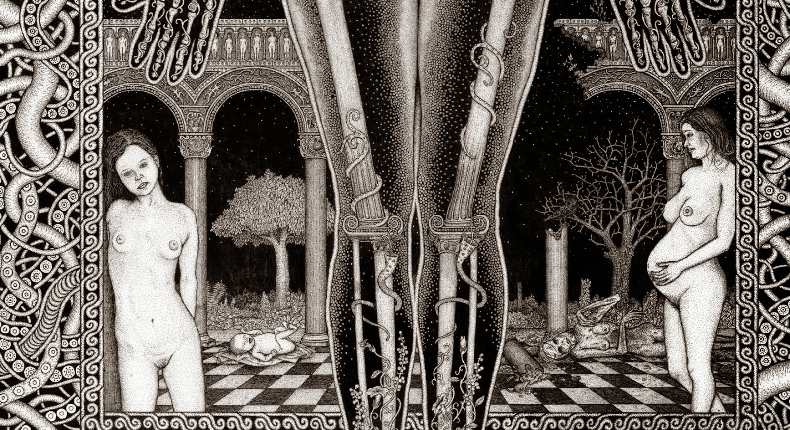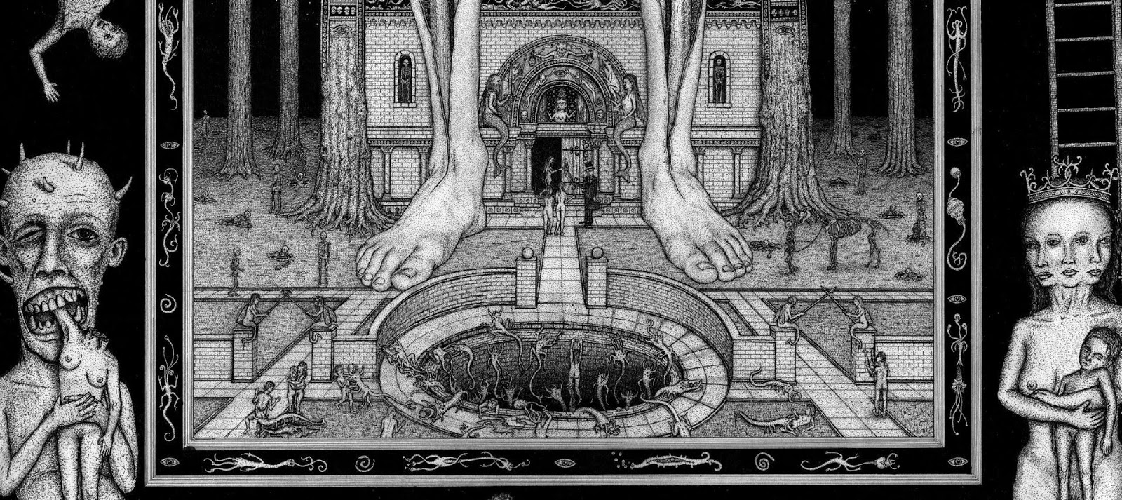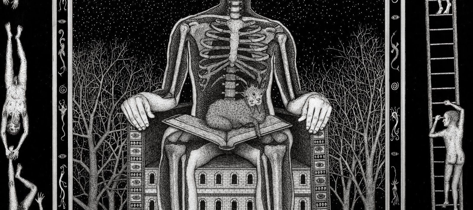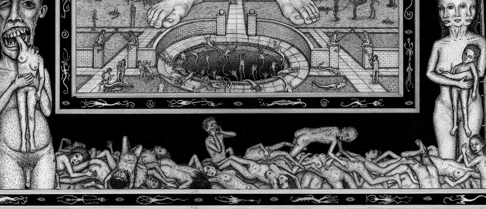 Through art, I create a space for myself to slow down and reflect on this unlikely experience I am embedded within. I am fascinated by with the juxtapositions of the mundane patterns of everyday life and the extraordinary peculiarity of life itself. While going through the repetition of everyday tasks it is easy to forget just how strange and complex life is. I am in constant amazement that life works and this whole unlikely project of existence continues to unfold so flawlessly. In a world that’s constantly moving faster and faster my meticulous ink drawings allow me the space to slow down and explore my circumstances. I was raised in a conservative Mormon family. The meaning of life came in a neat packaged box but fell apart with the slightest bit of scrutiny. Long ago as a child, I abandoned any existing cultural mythology as an explanation for life and have been exploring this mystery, and creating my own mythology through art, ever since. Without any prepackaged creation stories, I have the freedom to just reflect on the mystery, beauty and horror of it all without any prejudice. The more I learn, the stranger everything becomes. But this grandeur of possible thoughts and experiences has to still be tempered with the same mundane tasks and struggles of the daily slog through life that has always been with mankind. The slow process of dense ink drawings allows time to dig out a more subtle understanding of my circumstance and embed that in my work. In my recent work I am exploring the spaces I, and we as a culture, create and inhabit. I am interested in how our constructed environment limits us as well as offering us possibilities. Within this constructed environment, I am further interested in the peculiarities of the individual in relation to the larger culture.