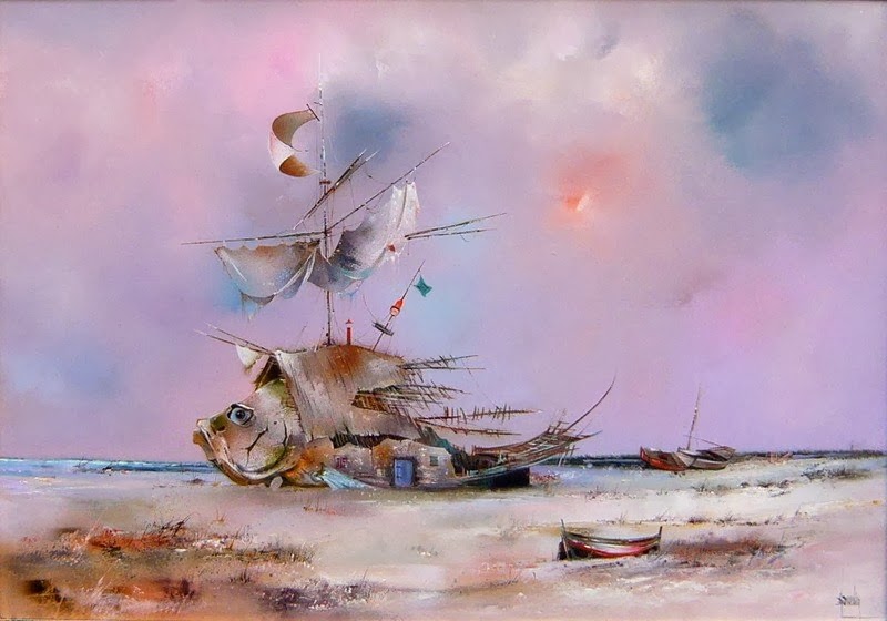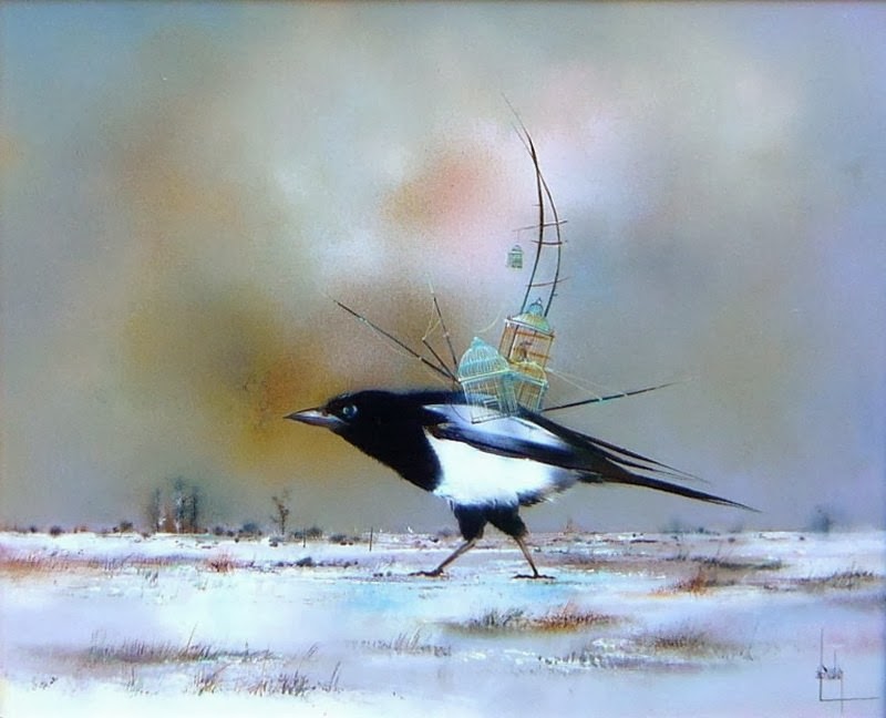 Egli trasfigura oggetti, animali o vegetali, li adatta insieme, formando un incoerente uno armonia.