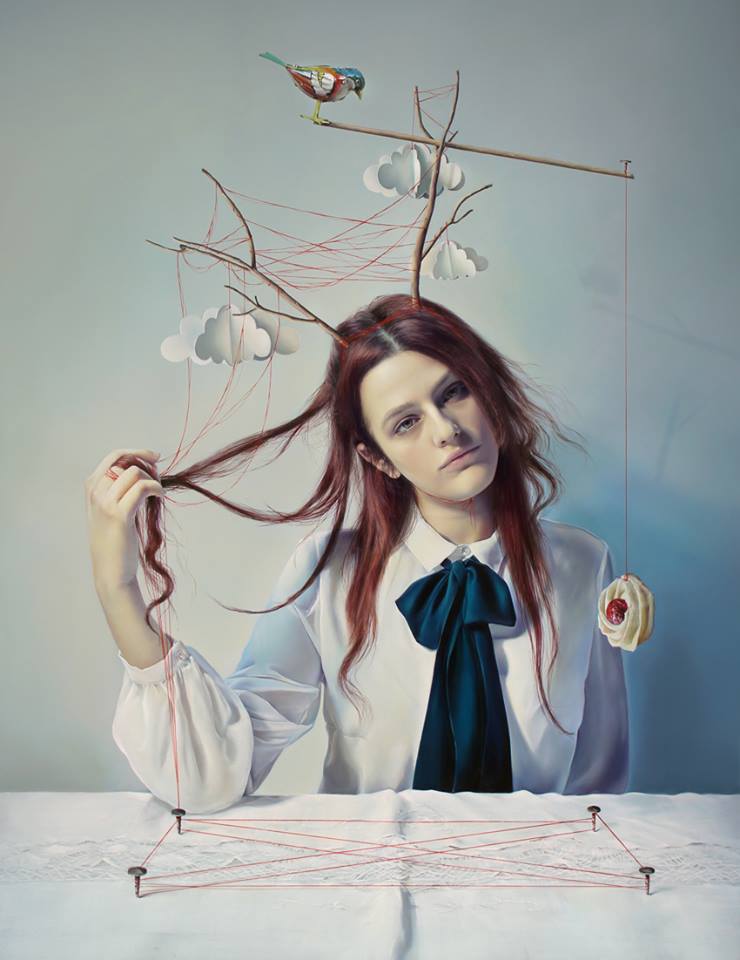 Lei è fatta di sogni, ma anche di carne. E di pensieri. Pensieri che con abili mani leste da pittrice si materializzano in forme, pose, colori. Dai suoi tubetti di colori ad olio si materializza ciò con cui lei si incontra e si scontra, tutto ciò che affascina e ciò che terrorizza.
