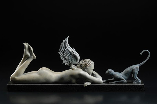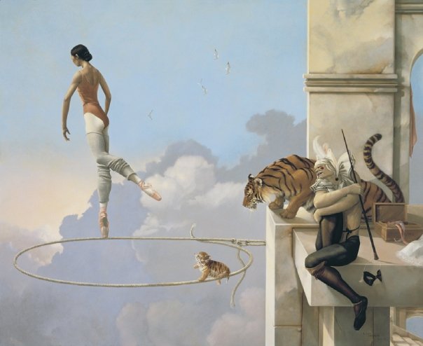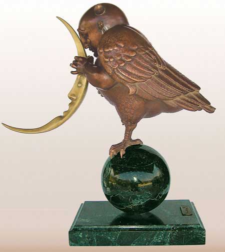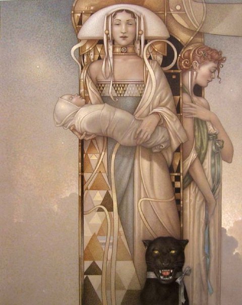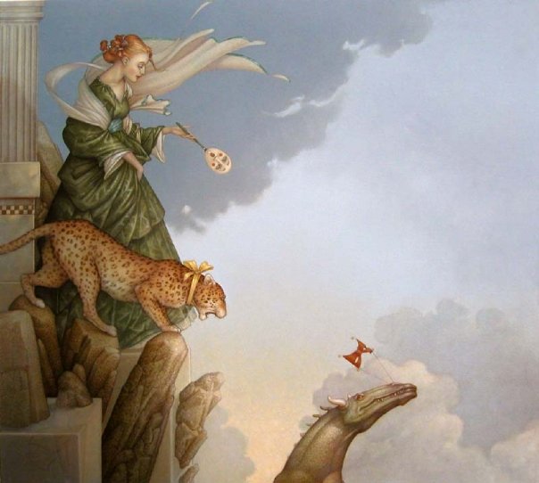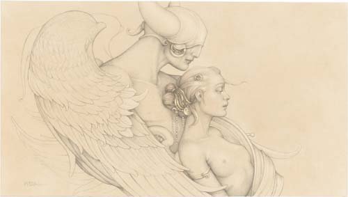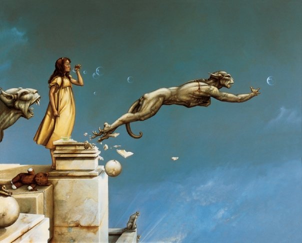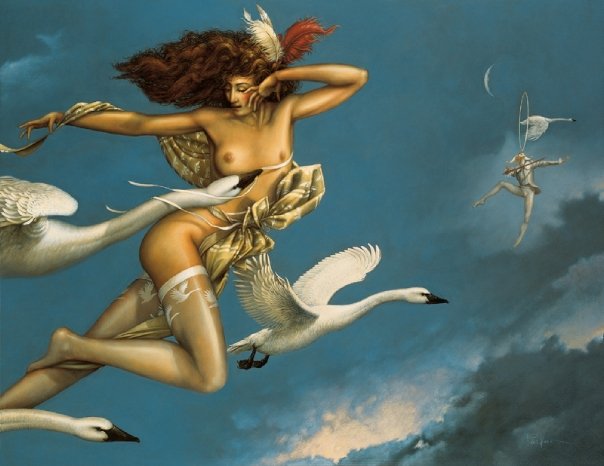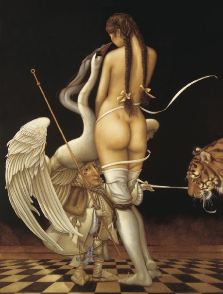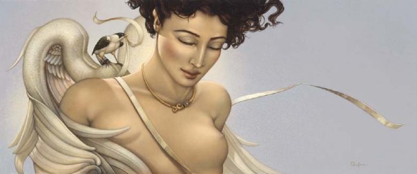 Michael Parkes – Magico realista. Ciò che è insolito Michael Parkes è che nelle sue immagini gli elementi metafisici e spirituali sono uniti in realtà. Il suo lavoro evoca un’atmosfera misteriosa, che spesso può essere decifrato solo con l’aiuto della mitologia antica e la filosofia orientale. Nel mondo fantastico di Parkes, le leggi della realtà terrena sono aboliti, e lo spazio e il tempo entrano nella loro comunione immobili. Si è tentati di parlare di un mondo di sogno con Parkes, se non fosse per il fatto che il ‘mondo dei sogni’ di Michael Parkes supera tutti i nostri sogni in audacia, la libertà e l’intensità. In breve, in Michael Parkes, l’arte figurativa del nostro tempo ha trovato una nuova, affascinante ed estremamente autentico esponente. Come esseri umani, limitiamo il nostro senso di percezione di ciò che è generalmente confortevoli e presente nella vita quotidiana. Limitando le nostre percezioni per soddisfare la nostra individualità, ci manca la vastità di altre percezioni e le porte che rappresentano. Anche se siamo stati condizionati a percepire nulla se non il nostro mondo, questo non significa che non possiamo entrare altri regni. – Michael Parkes Nato nel 1944, Michael Parkes ha studiato grafica e pittura presso l’Università del Kansas e poi viaggiato per tre anni attraverso l’Asia e l’Europa. Nel 1975, Michael Parkes si stabilì in Spagna, dove ora vive. Durante la sua carriera, numerose mostre internazionali sottolineano l’importanza del lavoro Parkes ‘. Michael Parkes è sia un pittore di talento unico e maestro dell’arte della litografia originale in pietra. Michael Parkes è il leader mondiale magico realista. Lui è un pittore, uno scultore e litografo pietra. I suoi oltre 30 anni di successi come artista spiccano nel mondo dell’arte, dove meno del 1% di artisti mai raggiungere il successo sia nei mercati primari e secondari. Lavori di Parkes ‘sono raccolti da celebrità, importanti collezionisti privati ​​e musei di tutto il mondo, e il suo corpo di lavoro ha resistito alla prova del tempo. Detto questo, Parkes ‘continua a creare nuove opere, che sono tutti molto ricercati. Mostre: Michael Parkes ha avuto mostre personali presso la fiera di Basilea in Svizzera, Art Chicago, New York Art Expo, Frankfurt Book Fair, Amsterdam Art Fair, Tefaf Arte e Antiquariato Fiera di Maastricht e sono rappresentati da prestigiose gallerie di Amsterdam, Parigi, Danimarca, Italia, New York, Los Angeles, la San Francisco Bay Area, e giro per gli Stati Uniti. Nel 2007, Michael è stato l’ospite d’onore e caratterizzato artista nella mostra internazionale “Venere e il femminile Intuition”, esposto in Danimarca e Olanda. Sempre nel 2007, il lavoro di Michael Parkes ‘ispirato una produzione di danza contemporanea Scorpius Dance Theater di Phoenix, dove la sua arte ha preso vita nel set e personaggi del balletto. posto nella storia dell’arte John Russell Taylor, critico d’arte per il Times di Londra e l’arte collaboratore di Il New York Times, dice: “Compare [Parkes] anche con il meglio di loro, come Mobius di Theo van den Boogaard, e la differenza è subito evidente. La sua tecnica è più pittorico, la sua immaginazione e tanto meno legato entro i confini della narrazione. In realtà, la narrazione è l’ultima cosa che si pensa, di fronte a una delle immagini di Parkes ‘. Parkes, come Alma-Tadema, ha sviluppato l’abilità eccezionale nel rendering di marmo venato e le texture dei vari tessuti, come si aggrappano o cadere dalle curve delle sue figure femminili remoto ancora invitanti. ” “Con Parkes ci può essere ricordato, ora di alcuni vittoriana, ora di Botticelli, ora di Tiepolo, ora (anche se molto più raramente) di Goya. Ma tutti questi, anche se Parkes ha indubbiamente li osserva, sono stati assorbiti in una sensibilità tutta moderna. Se eravamo alla ricerca di un cavallo di stalking ventesimo secolo, potremmo guardare al surrealisti come Dalì e Magritte. ” “C’è una differenza importante, però. In Surrealismo, c’è sempre un senso di stress e [il] azzurri sotto la superficie liscia e soigné. Forse c’era un tocco di quello Parkes all’inizio della sua ultima fase: i clown ei nani potevano sembrare minaccioso, non tutti gli animali avevano i loro artigli inguainati in modo sicuro. Ma Parkes sembrava sempre essere almeno brama dopo calma e tranquillità, e nei suoi ultimi lavori ha raggiunto. “Personal History ven prima che potesse leggere e scrivere. Era figlio unico, cresciuto in Canalou, Missouri, una tipica cittadina americana del Midwest negli anni cinquanta. Ha frequentato la scuola d’arte dove ha incontrato la donna, artista e musicista al quale rimane sposato più di tre decenni più tardi, Maria Sedoff. Parkes ha insegnato a livello universitario storia dell’arte come la giovane coppia ha fatto la loro strada in epoca Vietnam. Parkes è stato uno studente serio e permanente di spiritualità e di esoterica. Insieme, nel 1970, Michael e Maria partono per un viaggio spirituale in cui hanno trovato eccellenti insegnanti e una passione per l’India. Tornando alla Spagna subito dopo la loro unica figlia è nata, Michael e Maria hanno lavorato insieme per formare una joint venture finanziariamente stabile in arte, iniziando con umiltà produzione e vendita di cinture in pelle ai turisti di raggiungere il prestigioso riconoscimento internazionale come un maestro che Parkes gode oggi. Parkes rimane umile e tanto come il prossimo tuo preferito come il tessitore sapiente del mito e dei sogni che noi conosciamo attraverso la sua arte. In definitiva formando una casa editrice per rappresentare in modo indipendente la sua opera d’arte, Michael e Maria ora vivono e lavorano in Spagna. Swan King International è ora editore esclusivo Parkes ‘e distributore delle sue opere creative.