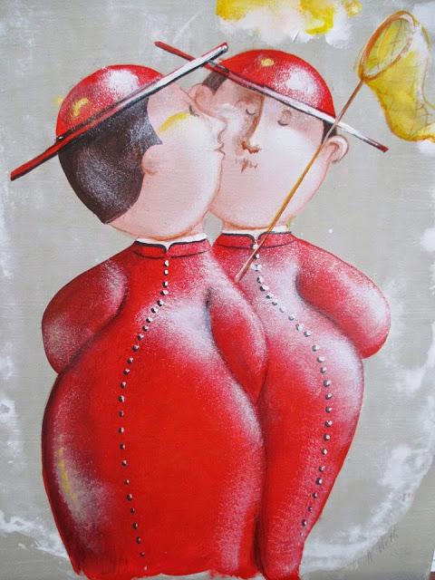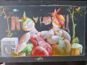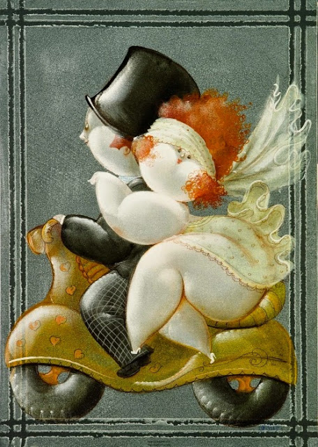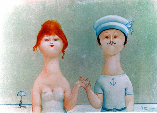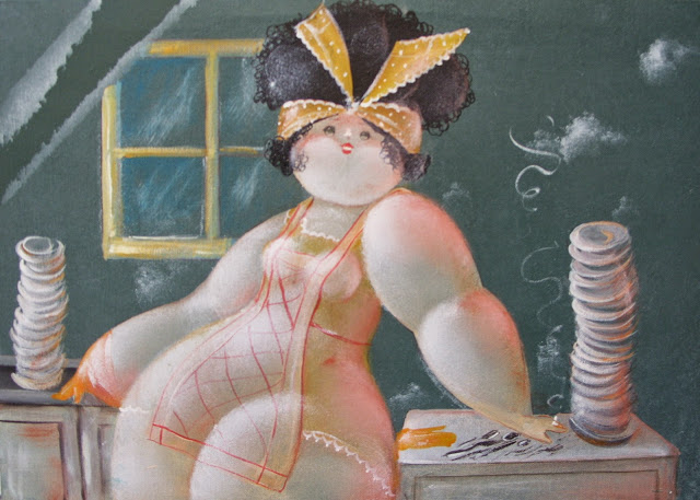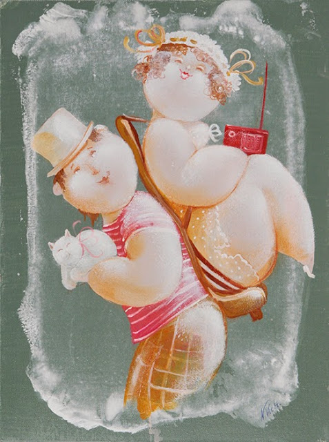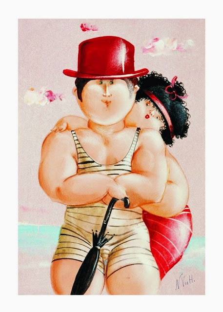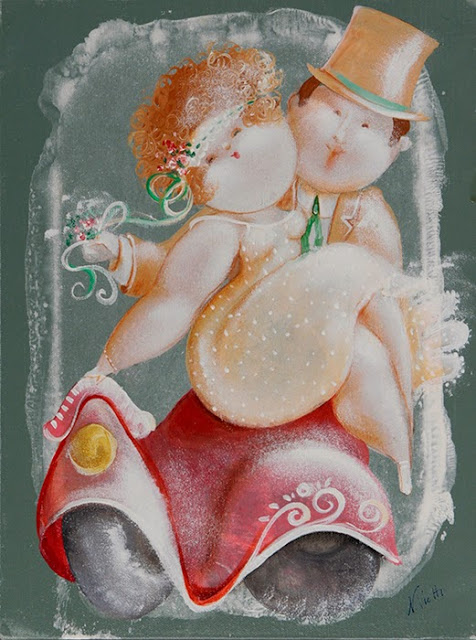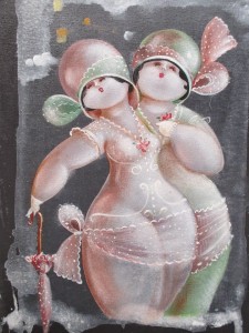 Nicola Vietti was born in Marseille March 22, 1945 to Italian parents from Puglia migrated to France at the beginning of the century. Numerous solo and group exhibitions. It ‘catalogs and magazines. He currently lives and works in Milan, after a long period spent in Paris. The figures of maidens Nicola Vietti, you can look on each side, three-quarter profile, standing behind me. The significance of the face, the deep similarity, coaxing and facial expressions between the romantic and sensual you will lose infinity. Little women languid and serene, fleshy and fickle, luxurious and sly, peaceful and quiet, cultured standing or resting on the sofas, walk with hats and headbands wrap your hair short, Nicola Vietti leaves no detail of this pantomime post-aristocratic capturing and highlighting all its educational libertinità, corruption salon, the weapon adulteress, the romantic love affair, the fatalistic malice. The style may refer to the fathers, that should not be forgotten at this point, as the international Botero Bueno offering Nicola Vietti an opportunity to start a style attempted with disenchantment. The decoration and color from dark green to pastel green from red to orange, from white and cream to the blues and the celestial themes and conventions that mark only women bistro, or bedroom, or brothels that unfortunately there are Moreover, manifested so clearly. A caption joy like a triumph ballad daily and smiling faces. Faces winking. Grimaces and looks. And the entire surface of the face Painted laughs. Strange way to laugh. They are the eyes laughing. Of joy and sex … Nicola Vietti, as this anthology lewd, bambolesca, own play, opens the show erotic, made of tights and underwear, but also of pink flesh and penetrating glances. The art starts in these calls.