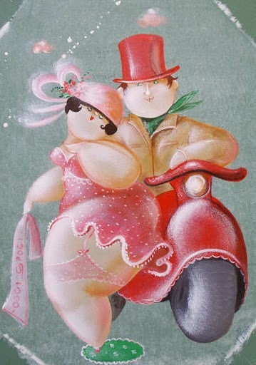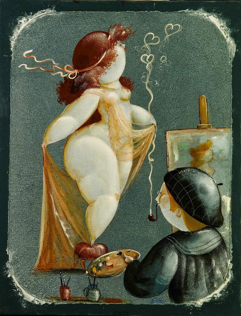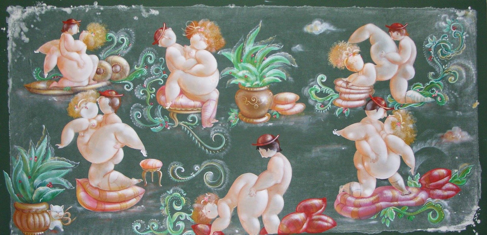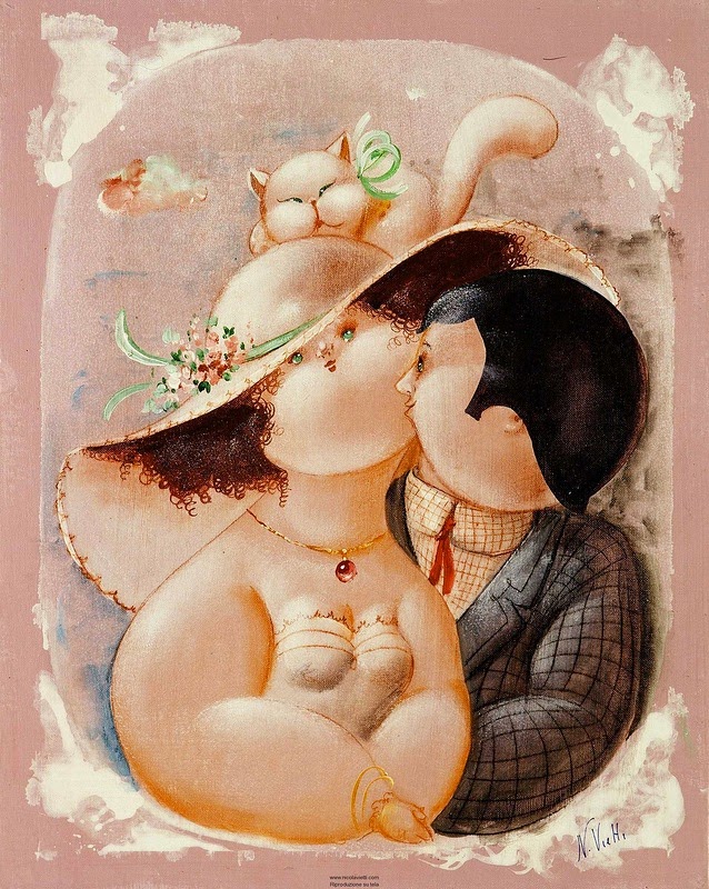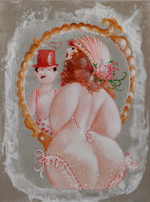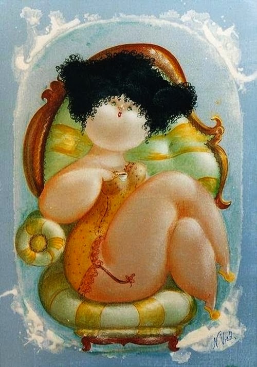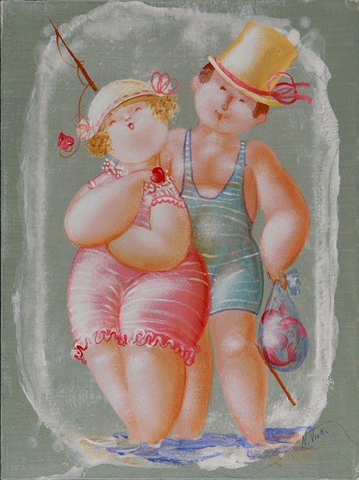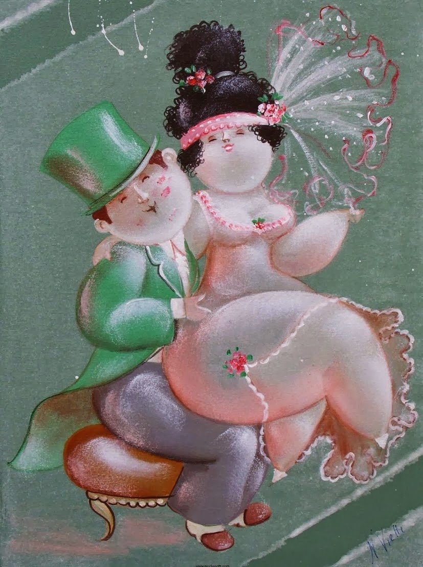 Nicola Vietti was born in Marseille March 22, 1945 to Italian parents from Puglia migrated to France at the beginning of the century. Numerous solo and group exhibitions. It ‘catalogs and magazines. He currently lives and works in Milan, after a long period spent in Paris. The figures of maidens Nicola Vietti, you can look on each side, three-quarter profile, standing behind me. The significance of the face, the deep similarity, coaxing and facial expressions between the romantic and sensual you will lose infinity. Little women languid and serene, fleshy and fickle, luxurious and sly, peaceful and quiet, cultured standing or resting on the sofas, walk with hats and headbands wrap your hair short, Nicola Vietti leaves no detail of this pantomime post-aristocratic capturing and highlighting all its educational libertinità, corruption salon, the weapon adulteress, the romantic love affair, the fatalistic malice. The style may refer to the fathers, that should not be forgotten at this point, as the international Botero Bueno offering Nicola Vietti an opportunity to start a style attempted with disenchantment. The decoration and color from dark green to pastel green from red to orange, from white and cream to the blues and the celestial themes and conventions that mark only women bistro, or bedroom, or brothels that unfortunately there are Moreover, manifested so clearly. A caption joy like a triumph ballad daily and smiling faces. Faces winking. Grimaces and looks. And the entire surface of the face Painted laughs. Strange way to laugh. They are the eyes laughing. Of joy and sex … Nicola Vietti, as this anthology lewd, bambolesca, own play, opens the show erotic, made of tights and underwear, but also of pink flesh and penetrating glances. The art starts in these calls.