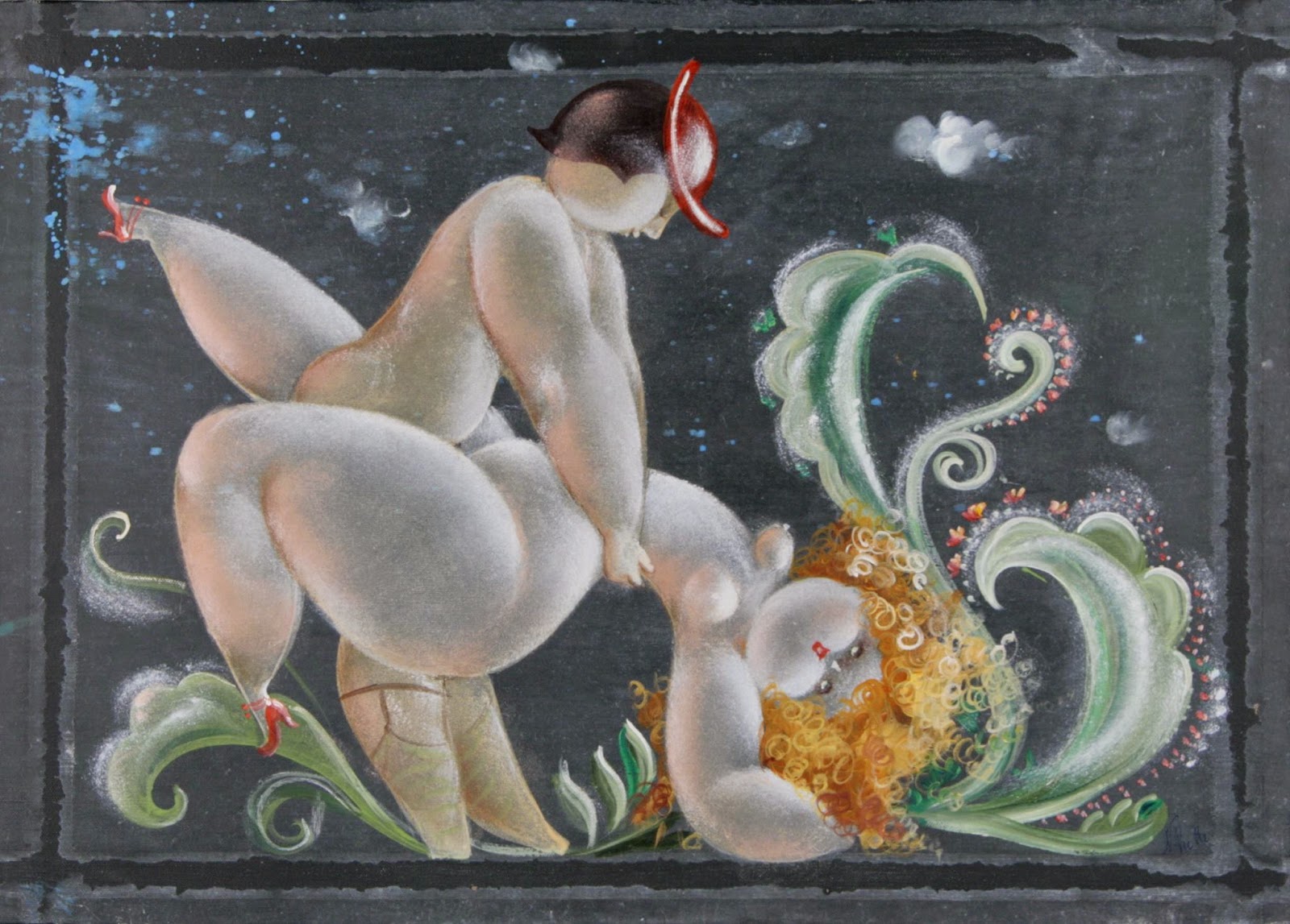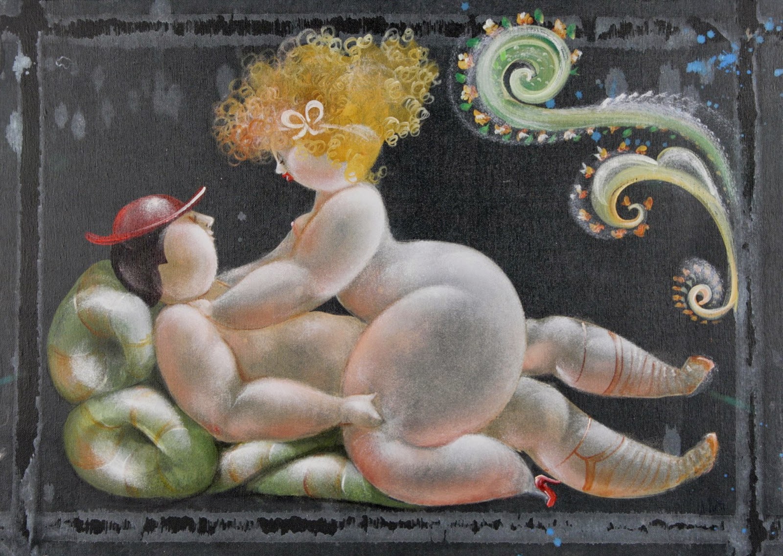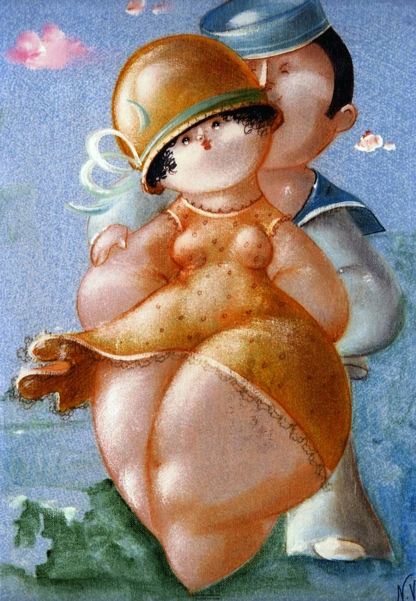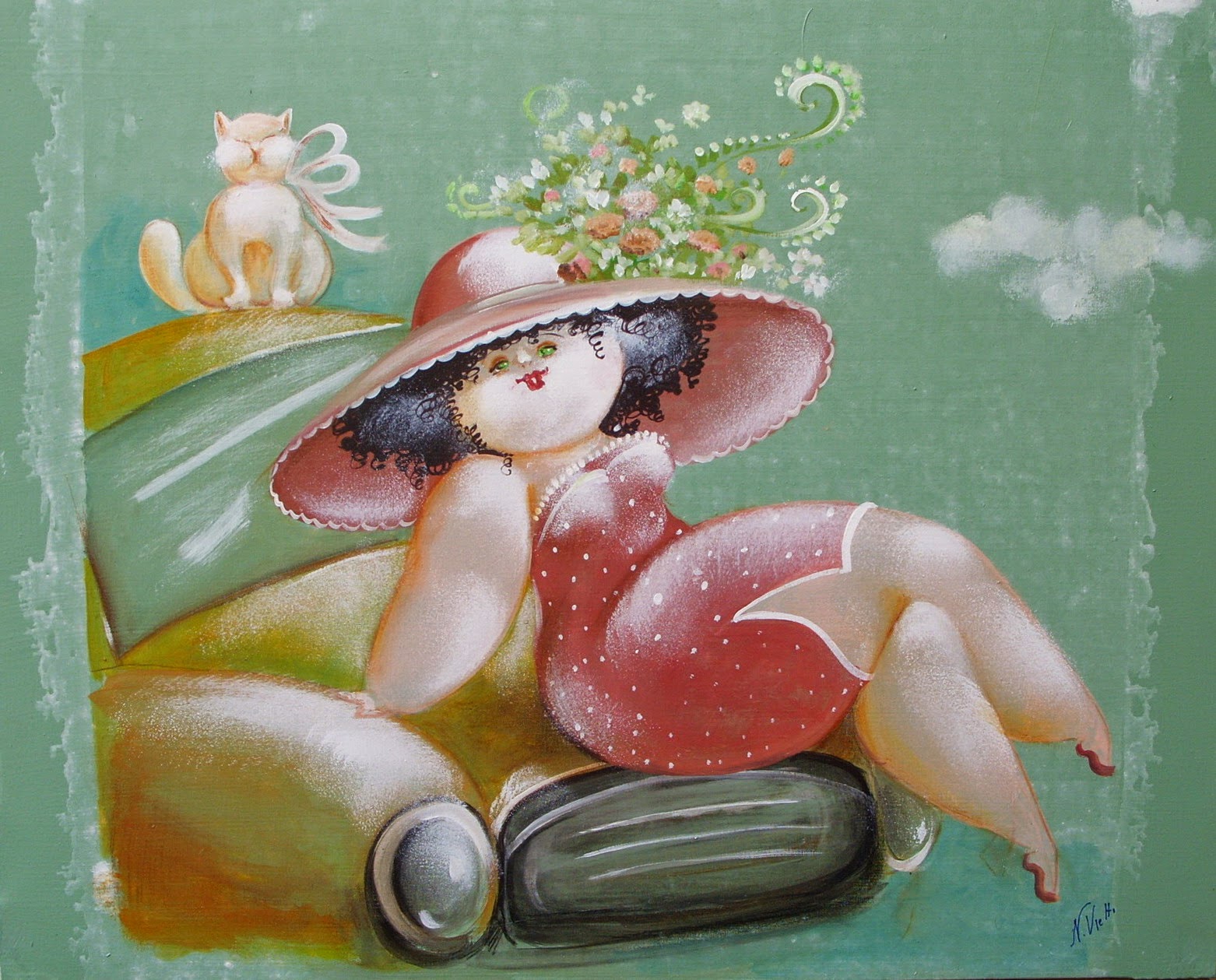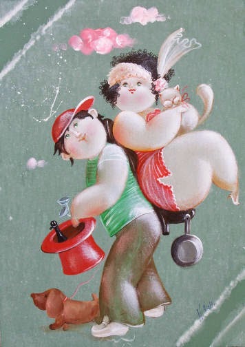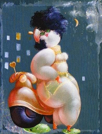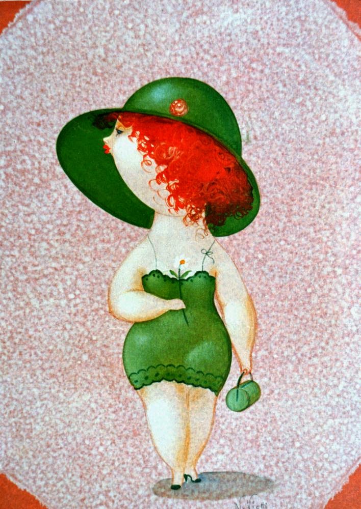 Nicola Vietti was born in Marseille March 22, 1945 to Italian parents from Puglia migrated to France at the beginning of the century. Numerous solo and group exhibitions. It ‘catalogs and magazines. He currently lives and works in Milan, after a long period spent in Paris. The figures of maidens Nicola Vietti, you can look on each side, three-quarter profile, standing behind me. The significance of the face, the deep similarity, coaxing and facial expressions between the romantic and sensual you will lose infinity. Little women languid and serene, fleshy and fickle, luxurious and sly, peaceful and quiet, cultured standing or resting on the sofas, walk with hats and headbands wrap your hair short, Nicola Vietti leaves no detail of this pantomime post-aristocratic capturing and highlighting all its educational libertinità, corruption salon, the weapon adulteress, the romantic love affair, the fatalistic malice. The style may refer to the fathers, that should not be forgotten at this point, as the international Botero Bueno offering Nicola Vietti an opportunity to start a style attempted with disenchantment. The decoration and color from dark green to pastel green from red to orange, from white and cream to the blues and the celestial themes and conventions that mark only women bistro, or bedroom, or brothels that unfortunately there are Moreover, manifested so clearly. A caption joy like a triumph ballad daily and smiling faces. Faces winking. Grimaces and looks. And the entire surface of the face Painted laughs. Strange way to laugh. They are the eyes laughing. Of joy and sex … Nicola Vietti, as this anthology lewd, bambolesca, own play, opens the show erotic, made of tights and underwear, but also of pink flesh and penetrating glances. The art starts in these calls.