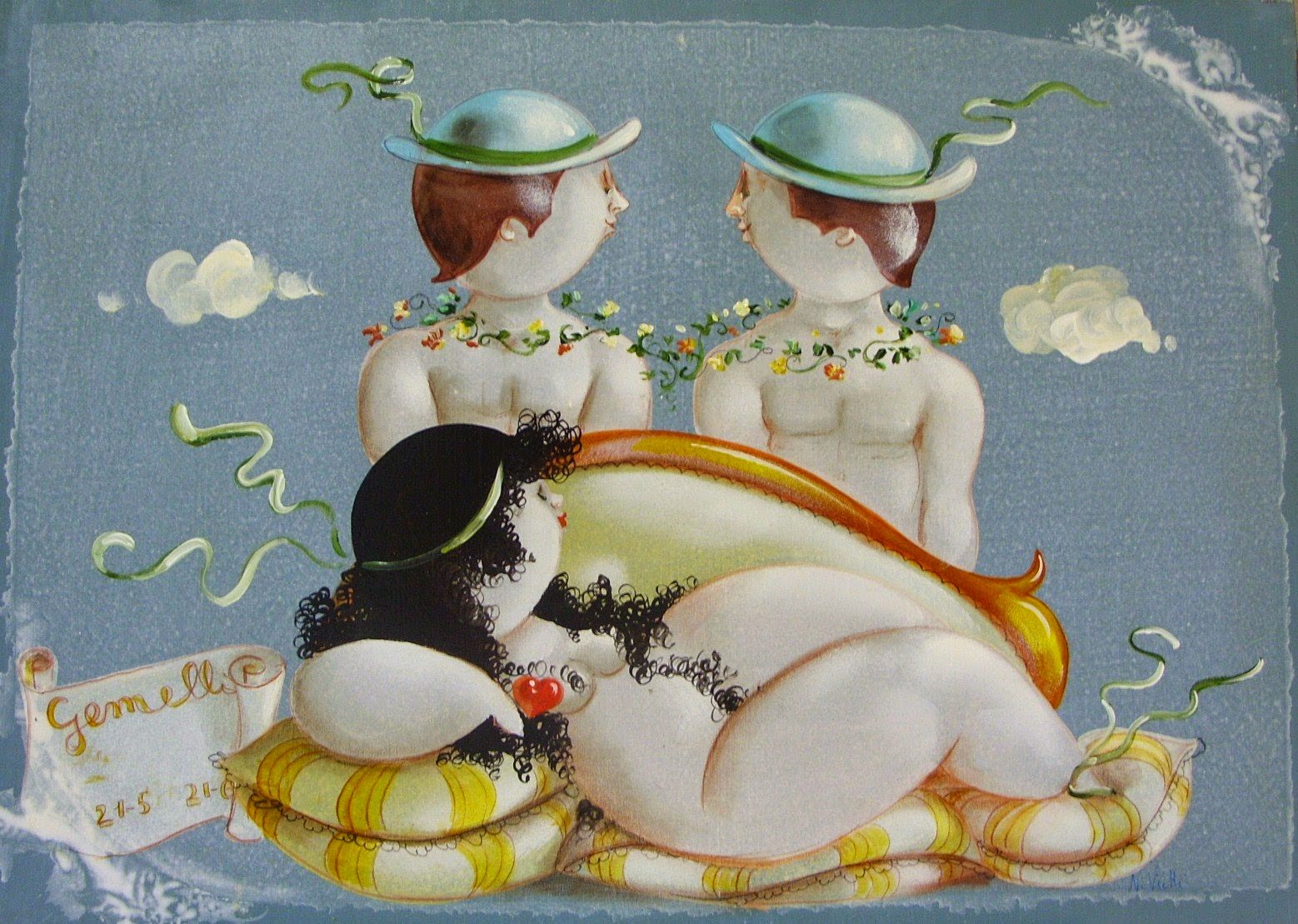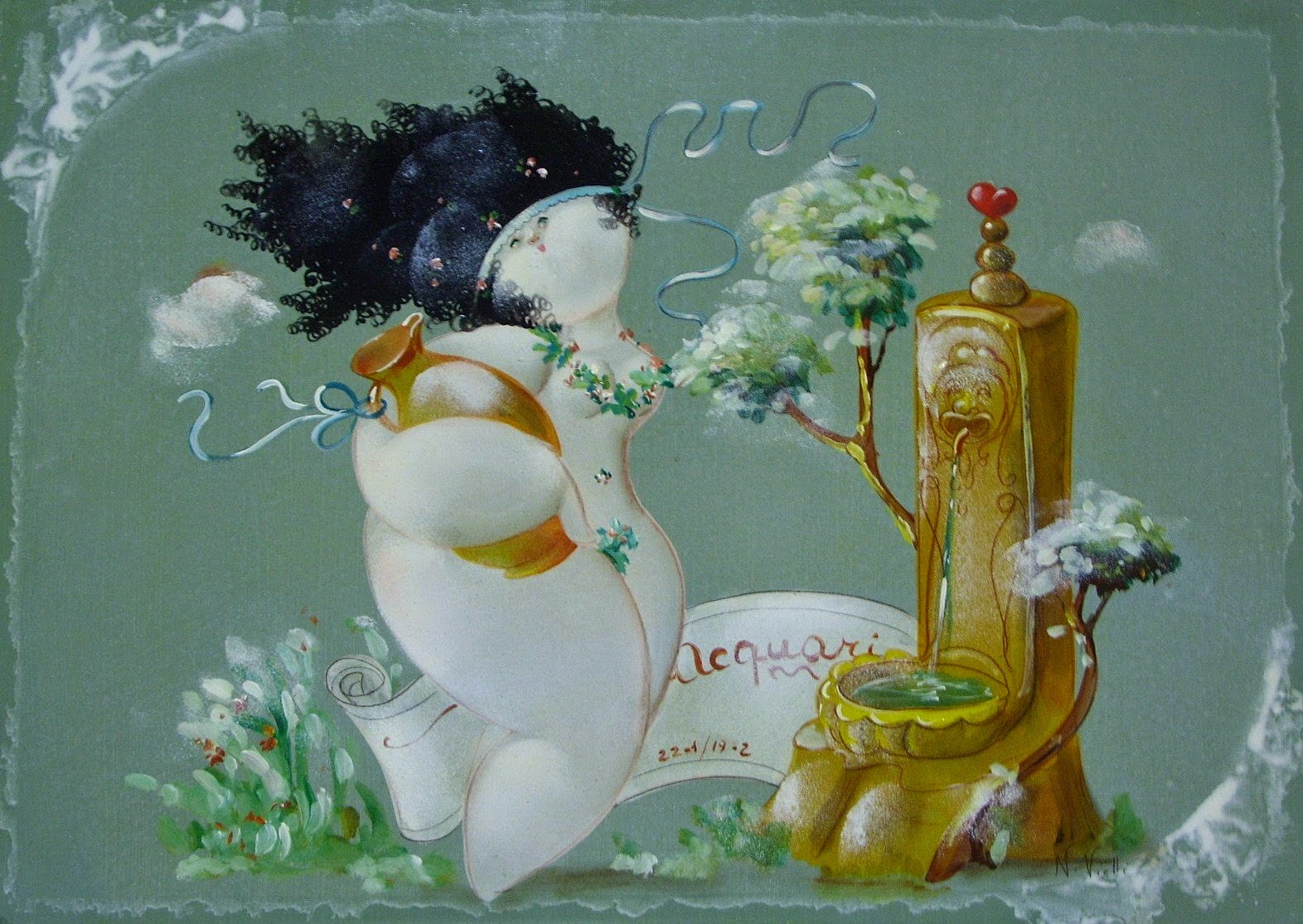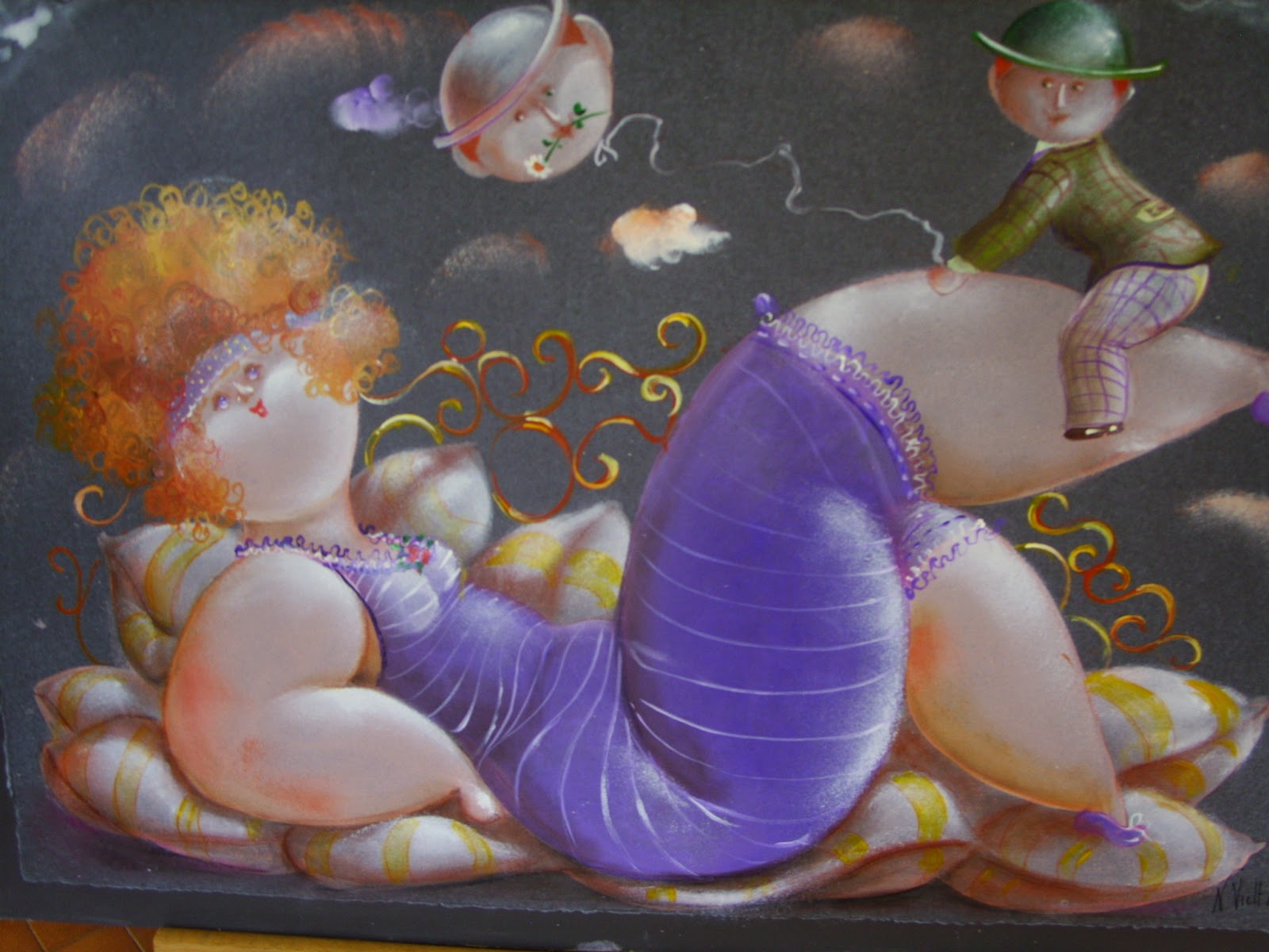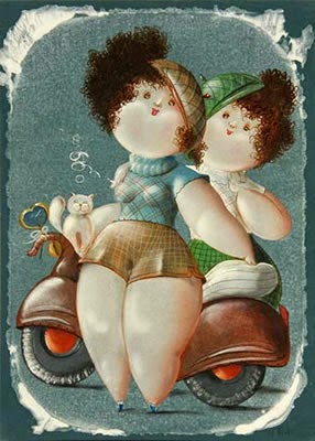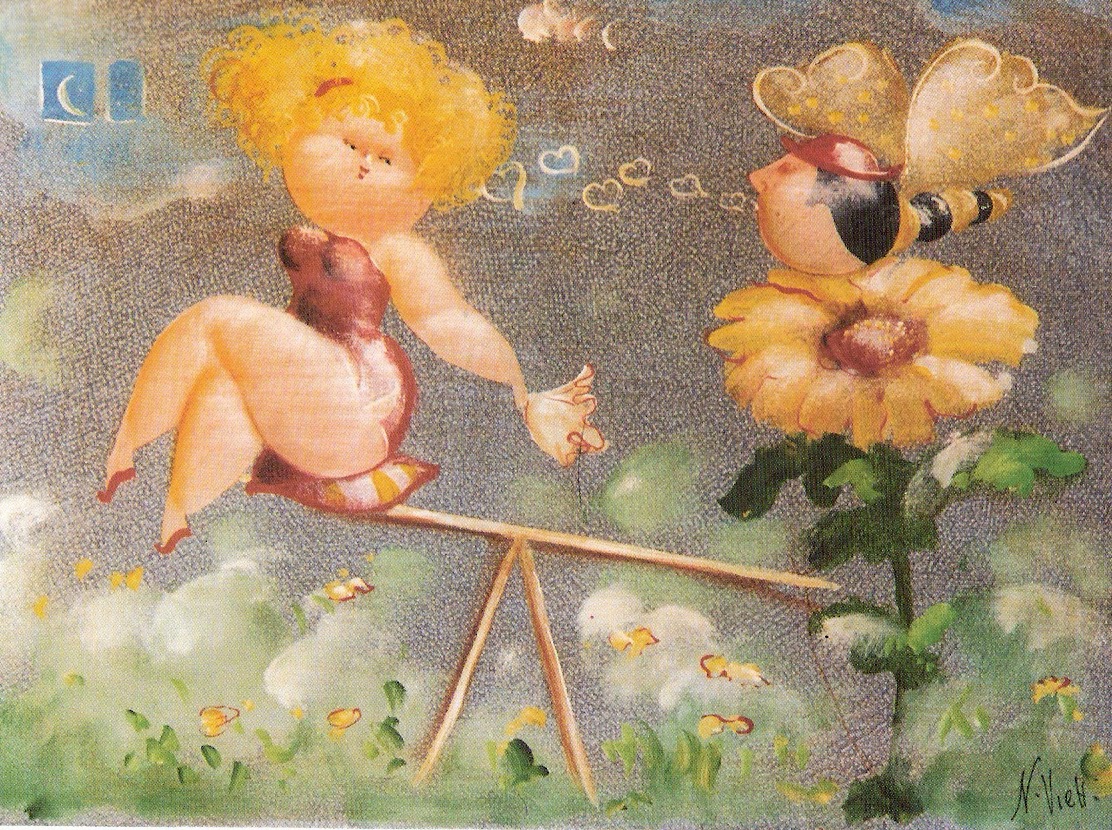 Nicola Vietti was born in Marseille March 22, 1945 to Italian parents from Puglia migrated to France at the beginning of the century. Numerous solo and group exhibitions. It ‘catalogs and magazines. He currently lives and works in Milan, after a long period spent in Paris. The figures of maidens Nicola Vietti, you can look on each side, three-quarter profile, standing behind me. The significance of the face, the deep similarity, coaxing and facial expressions between the romantic and sensual you will lose infinity. Little women languid and serene, fleshy and fickle, luxurious and sly, peaceful and quiet, cultured standing or resting on the sofas, walk with hats and headbands wrap your hair short, Nicola Vietti leaves no detail of this pantomime post-aristocratic capturing and highlighting all its educational libertinità, corruption salon, the weapon adulteress, the romantic love affair, the fatalistic malice. The style may refer to the fathers, that should not be forgotten at this point, as the international Botero Bueno offering Nicola Vietti an opportunity to start a style attempted with disenchantment. The decoration and color from dark green to pastel green from red to orange, from white and cream to the blues and the celestial themes and conventions that mark only women bistro, or bedroom, or brothels that unfortunately there are Moreover, manifested so clearly. A caption joy like a triumph ballad daily and smiling faces. Faces winking. Grimaces and looks. And the entire surface of the face Painted laughs. Strange way to laugh. They are the eyes laughing. Of joy and sex … Nicola Vietti, as this anthology lewd, bambolesca, own play, opens the show erotic, made of tights and underwear, but also of pink flesh and penetrating glances. The art starts in these calls.