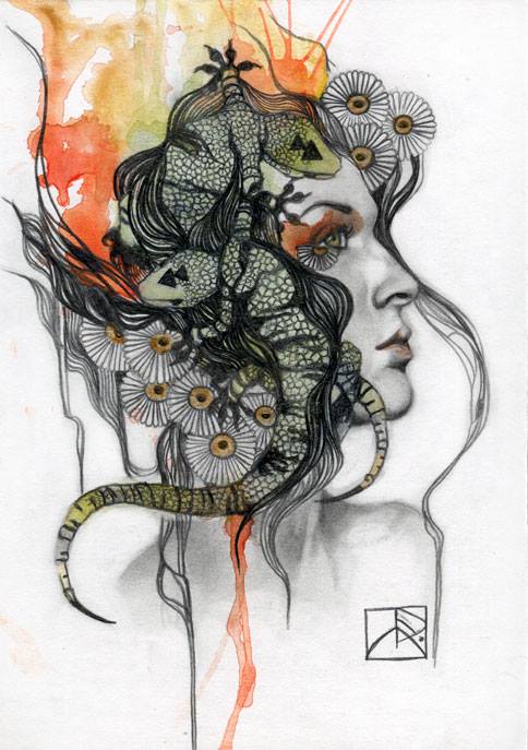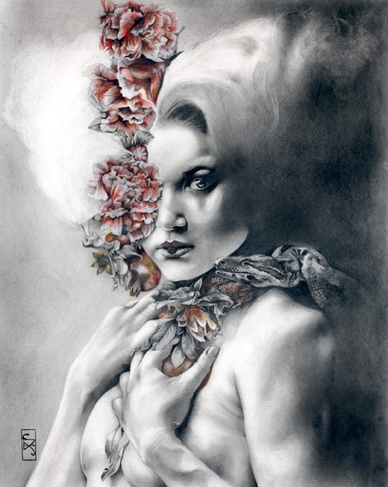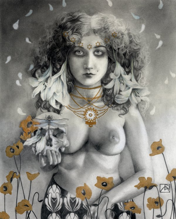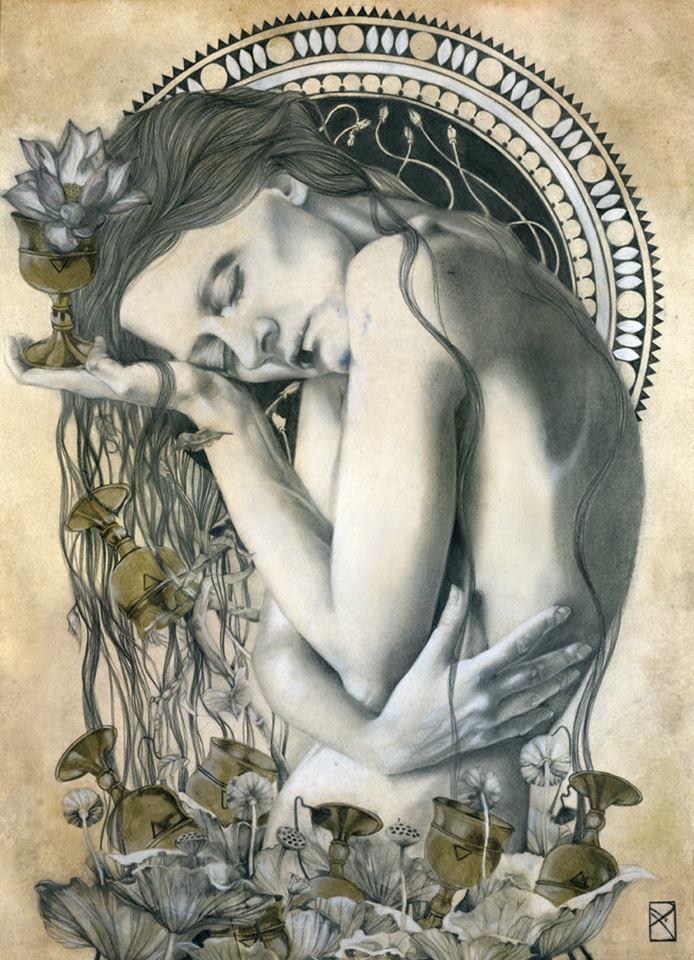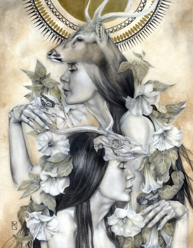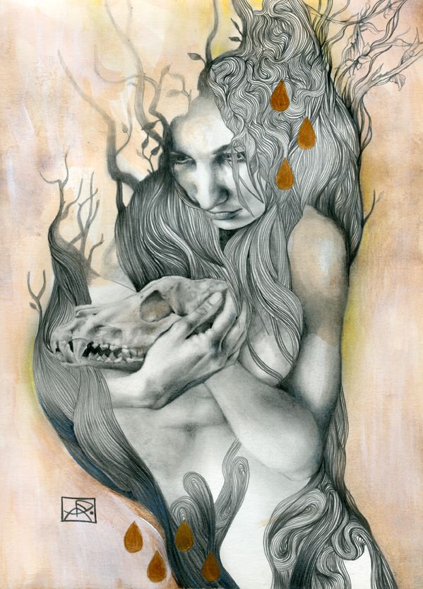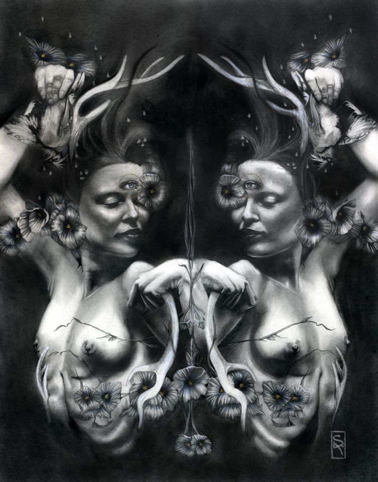 Penso alla mia arte come una celebrazione dell’esperienza umana in ciò che hanno di sacro e profano. Per me, non c’è nulla di più affascinante di mistero; questa è la fonte principale di tutte le mie riflessioni ed esplorazioni. Nel mio lavoro ho indagare costantemente il punto di contatto tra il fisico e la realtà dei sogni, la spiritualità, e concetti astratti. Temi come la trasformazione e le transizioni, la dualità dell’uomo, esperienze spirituali ed emozionali, e il legame dell’uomo con la natura e le forze grezzi della vita sono spesso esplorati. Da quando mi concentro principalmente sulla figura femminile, posso dire che il mio lavoro è anche l’esperienza femminile secondo la mia visione del femminile: il potere, la creazione, l’energia, la stregoneria, la vita. I personaggi che creo incarnano le forze della natura. Sono streghe, esseri eterei, portatori di buio e luce. “
