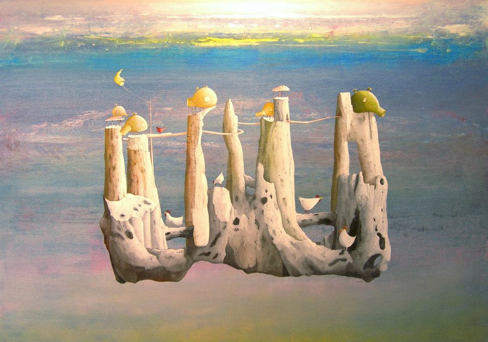 Silvano Braido è dotato di una sua lucida liricità, da una capacità di lasciar fluire il pensiero lungo le geometrie impossibili di una pittura bella ed eloquente, nobilmente satirica nell’ispirazione, ma di eloquio gentile, che non pretende di enunciare verità universali. L’invito al gioco, che questo estroso inventore propone, comporta tuttavia un’ adesione attenta a cogliere i nessi logici del suo paesaggio mentale, lungo il percorso piuttosto complesso delle immagini. Per un effetto curioso sembra qui di viaggiare in un paese straniero, eppure familiare, o di ascoltare il suono di una lingua non del tutto sconosciuta, quella che appartiene ai bambini e che sa attribuire alle cose i giusti nomi suggeriti dalle capacità onomatopeiche che solo l’infanzia sa esercitare.