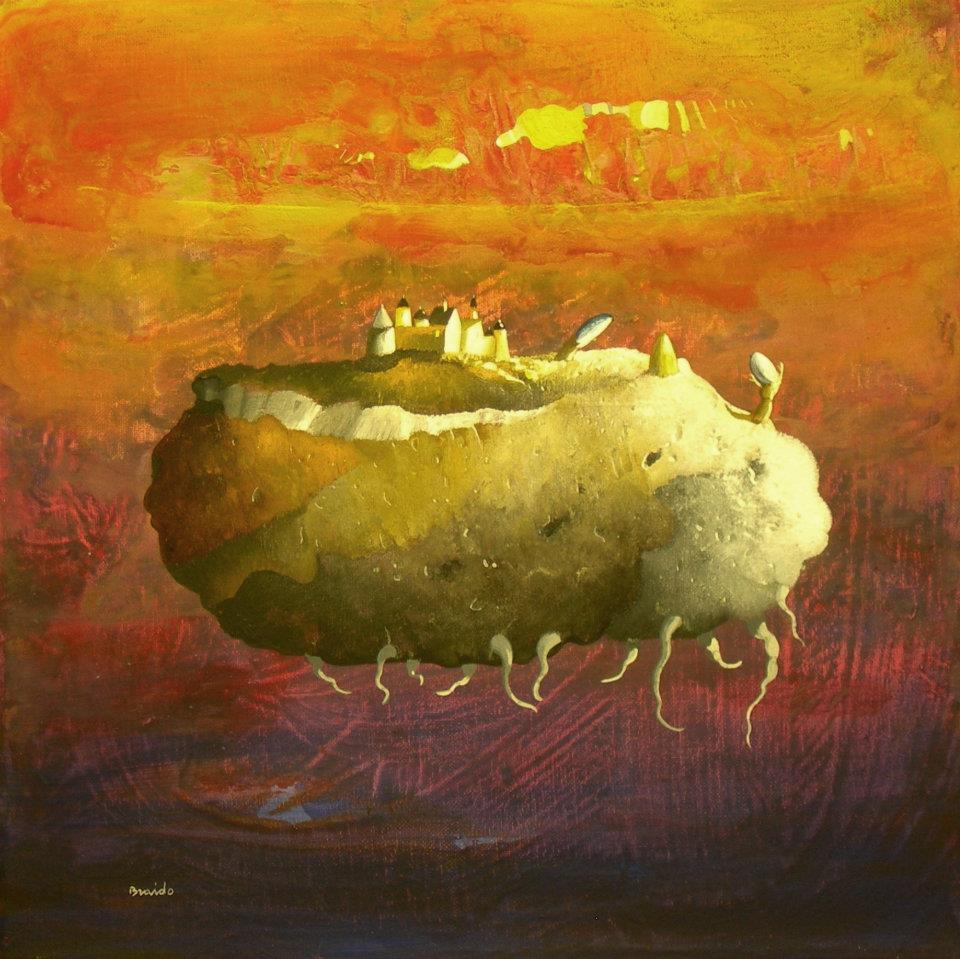 Silvano Braido è nato a Treviso, vive in periferia di Villorba immerso nel verde della campagna trevigiana. Fin da bambino oltre al gioco, scopre il bisogno di disegnare come necessità di espressione e di comunicazione. La matita, i pastelli, e successivamente l’olio e l’acrilico , gli saranno compagni inseparabili per tutta la vita. Il periodo scolastico (accademia delle belle arti a Venezia) lo impegna verso nuove acquisizioni eterogenee. Scuola che non porterà mai a termine, per motivi familiari, perchè i suoi mondi sono diversi e le sue esigenze di esprimersi differenti. I vari mestieri che in seguito ha praticato gli hanno permesso di affrancarsi del bisogno, ma non sono mai riusciti a distoglierlo dal sentimento della sua vocazione, strappando al riposo il tempo della pittura. E piano piano, con caparbietà, con intelligenza, con paziente lavoro di ricerca, intraprende la strada dell’artista a tempo pieno . Una scelta coraggiosa dettata dalla sensibilità e dal grande amore per il proprio lavoro. Approfondisce il disegno, le varie tecniche di pittura e incide le prime lastre all’acquaforte. Fin dalle prime esposizioni si rivela artista creativo e di grande fascino . Oggi, nel pieno della maturità, con raffinato senso pittorico, costruisce immagini di straordinaria bellezza: cieli infiniti e creature fantastiche che fanno luminose le scene dei suoi colloqui con la vita.