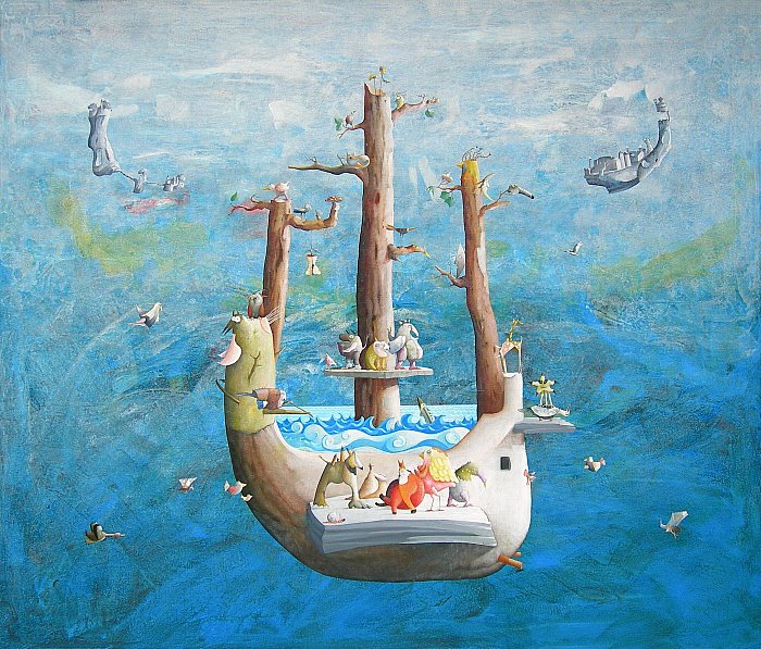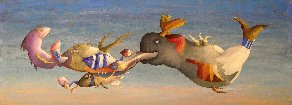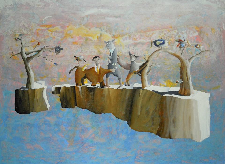 Vagando in ricognizione affascinata per i sentieri aerei e tra i disseminati monumenti della “città invisibile” tradotta in preziose icone profane da Silvano Braido, non poteva, ovviamente, sfuggirmi il singolare campionario tipologico dei suoi proteiformi abitanti. Non tanto gli umani, ossia i loro simulacri appartenenti perlopiù alla moderna tradizione pittorica della figura in situazione, quanto gli animali delle più diverse famiglie e specie: uno zoo variegato e non sempre di agevole classificazione. Più degli uomini, dei quali anzi assumono non pochi caratteri e comportamenti, sono gli animali le “dramatis personae” che subiscono le più spettacolari ibridazioni e metamorfosi nel laboratorio genetico di Braido. Non è una manipolazione irriguardosa della loro identità, sibbene una assimilazione esopiana alla logica del racconto e alle conseguenti esigenze di elaborazione creativa delle loro maschere. Che non possono non essere proiettive, e dunque caricarsi del portato umorale oltre che delle trasmigrazioni immaginative dell’autore. Più che un serraglio da antica zoologia fantastica, gli animali di Braido mi paiono insomma le interfacce del prisma in cui consiste l’umana natura. Nelle quali si rispecchiano i molteplici aspetti della personalità dell’artista, che si mette in gioco quando schiude la scena alle maschere ora idealizzate ora difformi degli animali, altrettanti alter ego per il cui tramite l’artista ironizza le proprie idiosincrasie e inibizioni, dichiara le proprie melanconie, esorcizza le angosce, s’abbandona agli slanci e agli intenerimenti, ai sogni e alla poesia, al ventalio di sensazioni ed emozioni di cui si nutre la sua giornata.