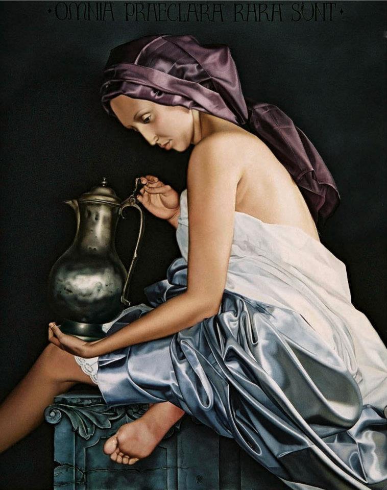 | Slava Fokk Official Website: http://slavafokk.com/ Slava Fokk is a Russian painter who combines elements of postmodernism and Russian symbolism. He is particularly interested in late medieval masters and Northern Renaissance. Slava’s remarkable technique with meticulous fidelity in drawing, modeling and color, masterful compositional sense and innovative approach to surface textures and media, give him a unique ability to flirt with greatest masters creating visually astounding interpretations of timeless masterpieces refracted through inspiration of modern vision. Slava Fokk was born in 1976 in southern Russia in a family of artists. Since early childhood Slava was surrounded by a creative atmosphere of art studios and workshops. In 1997 he graduated from Repin Krasnodar Art School as the top student of his class, and his work was subsequently selected to represent the top ten most talented graduates at the school’s 85th anniversary. Slava worked and exhibited in his home city of Krasnodar until 2001, when he was noticed and signed by Moscow Gallery Zero, the oldest and one of the most prominent galleries in Russia. In 2007 Slava received the First Award in the “Art and Time” category at the very prestigious First Moscow “Tradition and the Present” Art Festival . After numerous successful expositions for several years by Gallery Zero, Slava was invited to exhibit in the U.S. He currently lives and works in California, and exibits in several prominent galleries across the U.S. |